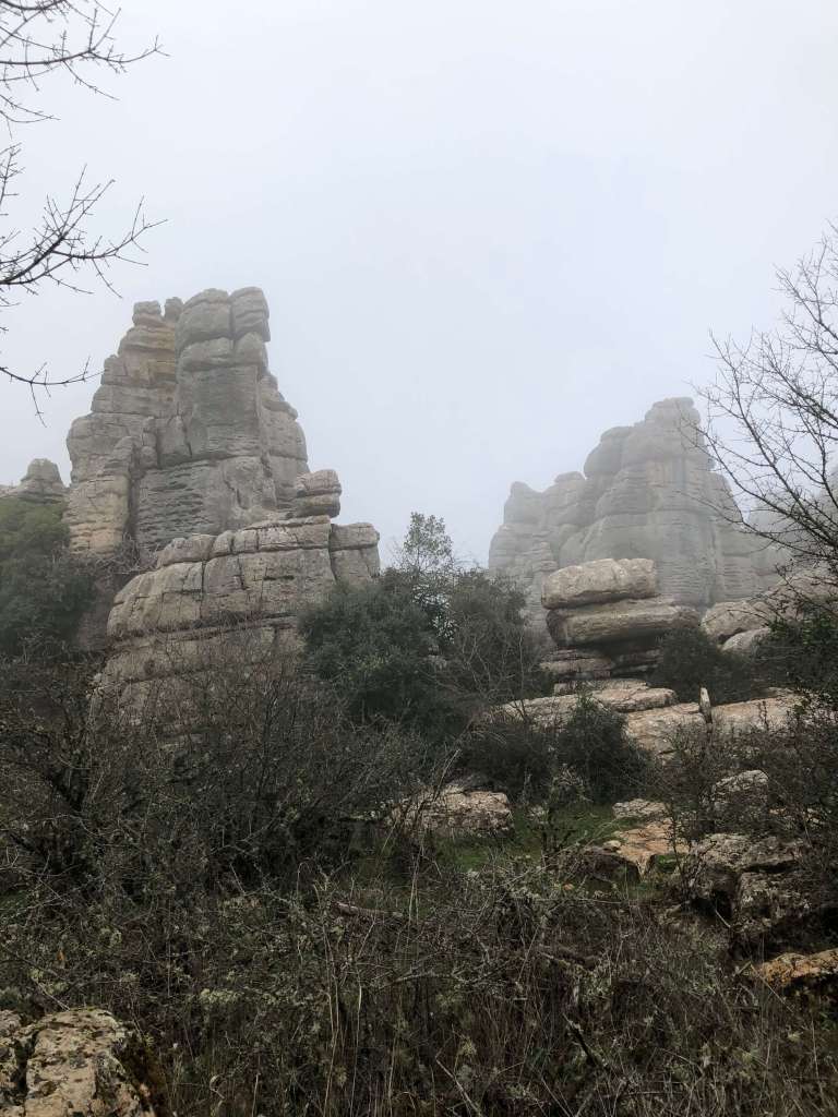 El Torcal is another place to go hiking in Málaga that can’t be missed. Located near the city of Antequera in a natural park that’s been declared a UNESCO World Heritage Site, it’s characterized by unique rock formations that feel other worldly. The route itself is quite easy with no elevation, which means you can take in the views of the unusual landscape at every turn. We visited in early January on a particularly foggy day. I have no idea if this type of weather is common, but it certainly added to the mystique!