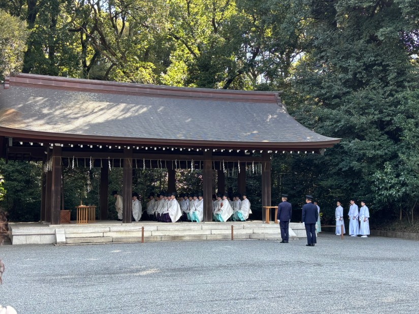 Filled with 17 goshuin, my little book (which I affectionately call my Temple Passport) holds the memories and stories from my trip to Japan. It reminds me of my visit to the Meiji Jingu Shrine in Tokyo where I caught a peek of a marriage blessing and dozens of Shinto priests during their morning prayer.